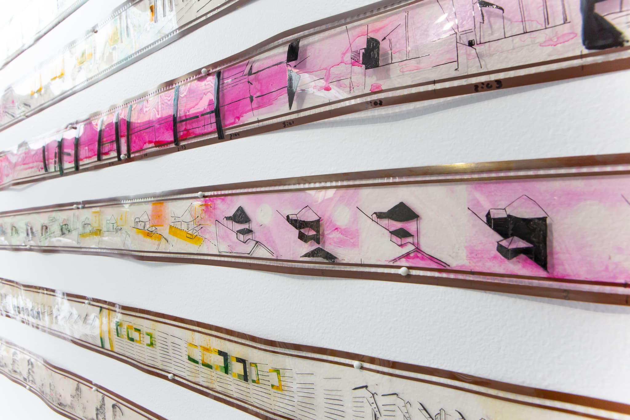 That dichotomy of painstaking labor and breathtaking visuals is on full display in The Skin Has Eyes: Animated Visions, which features works by both fine artists who incorporate animation in their practice and animators who create physical objects as part of their process. Take MassArt instructor Jake Fried’s Brain Wave (2019), a minute-long video that took seven months to make as he reworked the same ink and Wite-Out drawing 1,440 times. Or consider Hayley Morris’s The Ecstatics (2016), a stunning stop-motion music video she created for the band Explosions in the Sky. It’s paired with a behind-the-scenes look at the Providence studio where she conjured its paper universe, one stroke of her utility knife at a time. This too is a stop-motion video, assembled frame by frame, and props she created for the project are also on display.