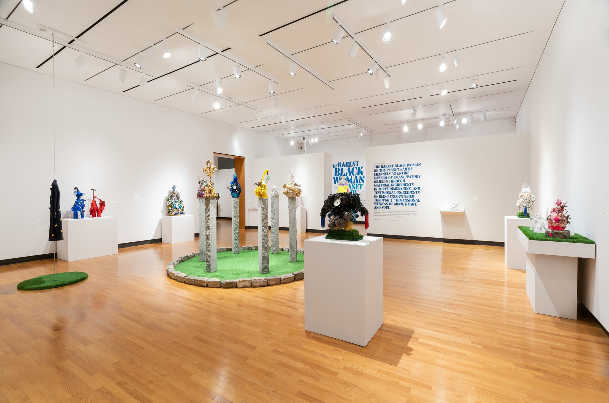 Installation view of “vanessa german—THE RAREST BLACK WOMAN ON THE PLANET EARTH” at Mount Holyoke College Art Museum, South Hadley, MA, on view October 13, 2022–May 28, 2023. Photo by Laura Shea. Courtesy of Mount Holyoke College Art Museum.