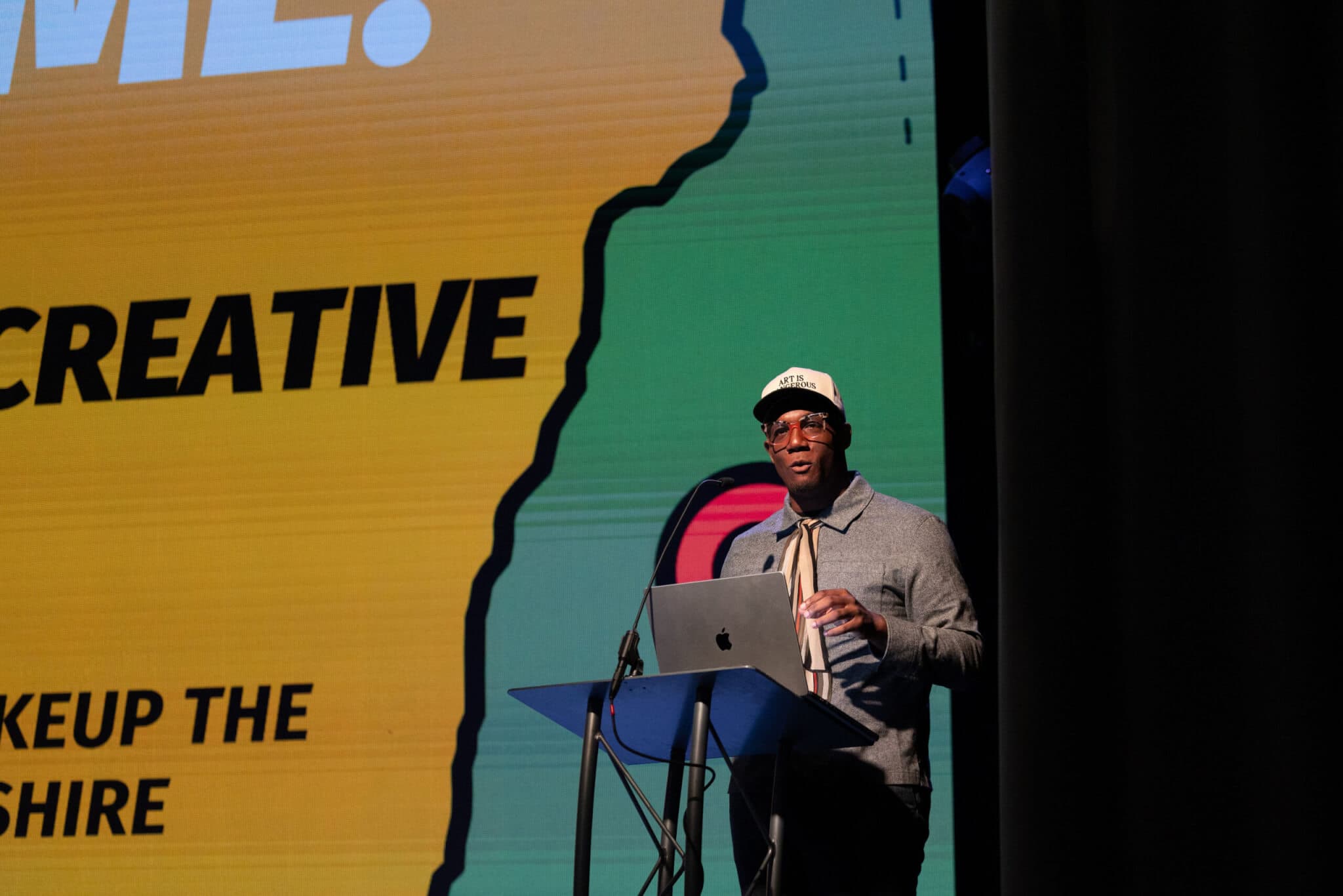 Harold Steward, executive director of the New England Foundation for the Arts, speaking to the audience. Photo by Katie Duncan.