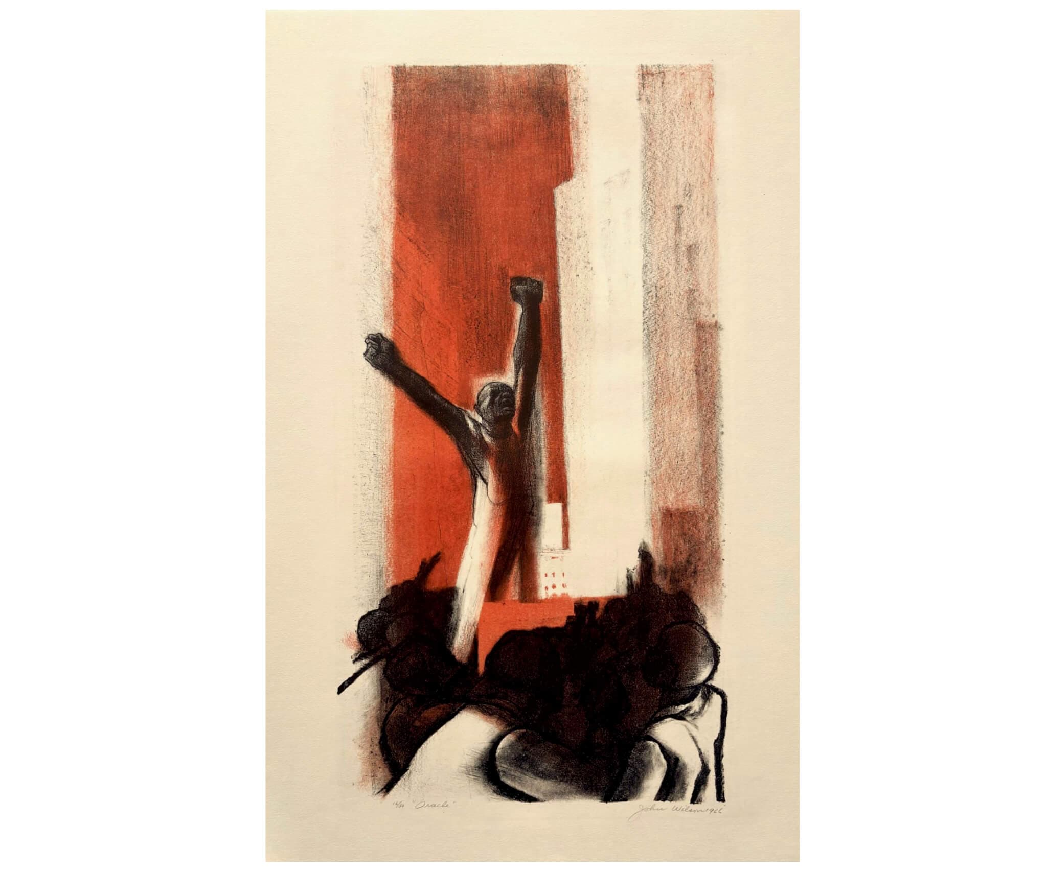 John Wilson, Oracle, 1966. Color lithograph, edition of 30,  18 ½ x 28 inches. © Estate of John Wilson. Courtesy Martha Richardson Fine Art, Boston.